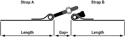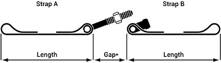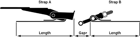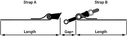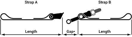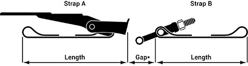 Measure the overall length of the strap from the outside of each loop or band end with calipers. Keep the strap as flat as possible while measuring the length.